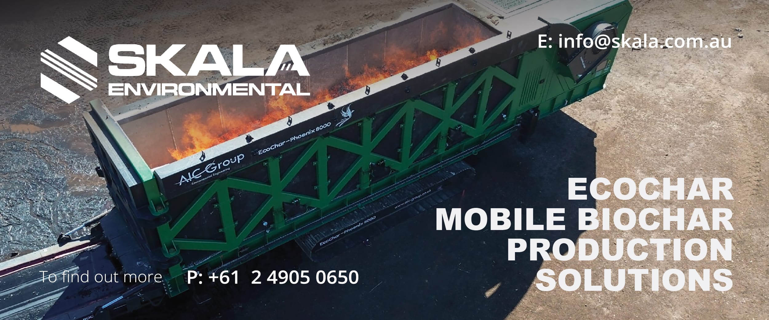 Among the technologies SKALA expects to gain immediate market traction is the AIC Mobile EcoChar Phoenix 8000, designed specifically for managing organic and timber overburden from composting and wood-processing facilities.